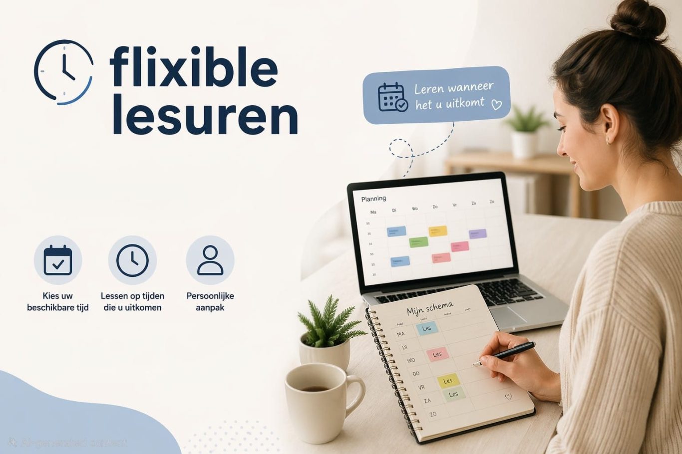 Wij begrijpen dat uw tijd waardevol is. Daarom stemmen wij onze flexibele lesuren volledig af op uw persoonlijke agenda.
